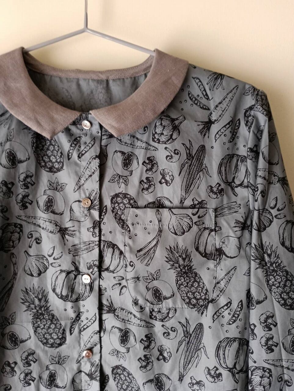 パイナップルやアーティチョークなど野菜の柄がかわいい生地です。