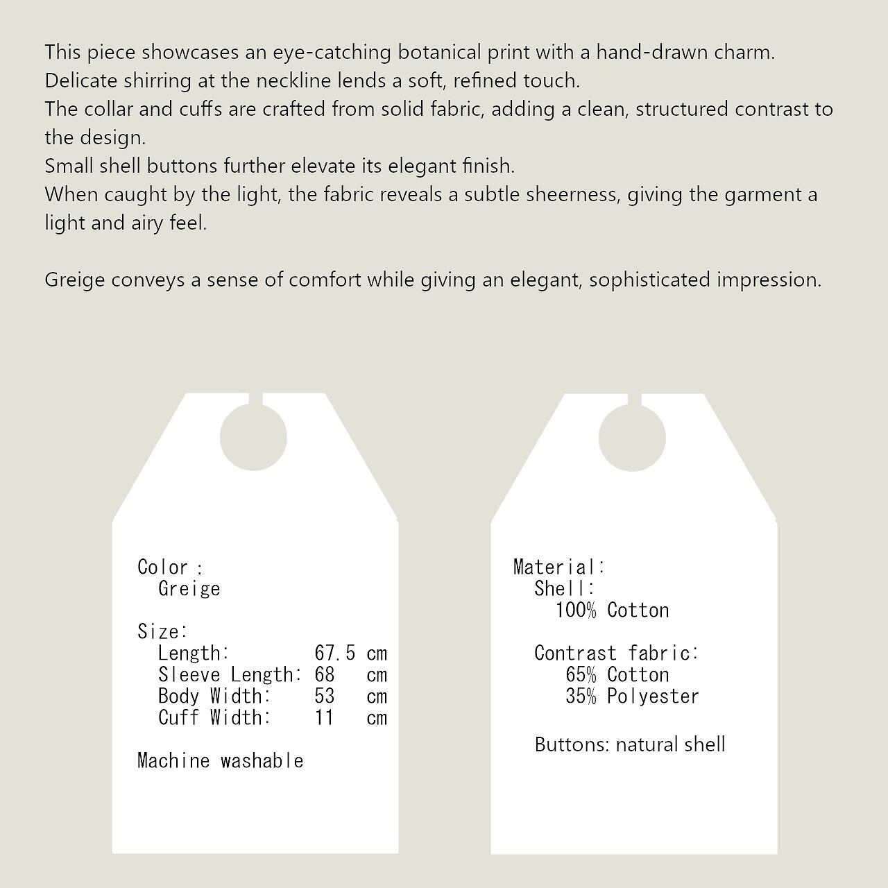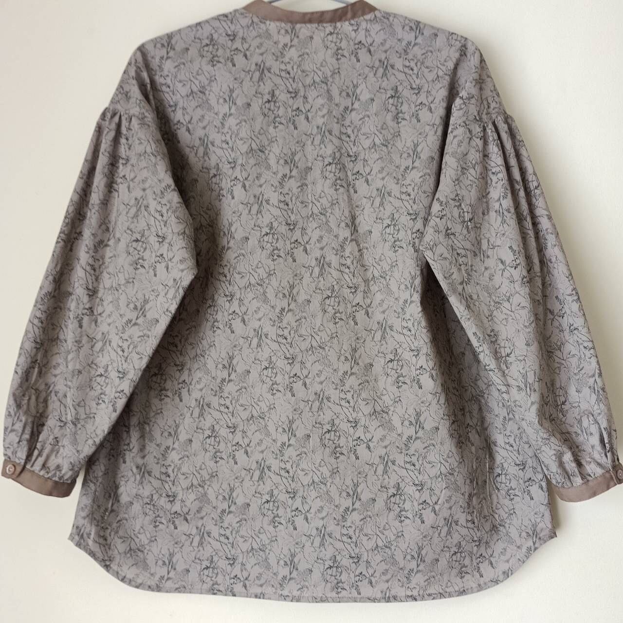ボタニカルプリントグレージュブラウス